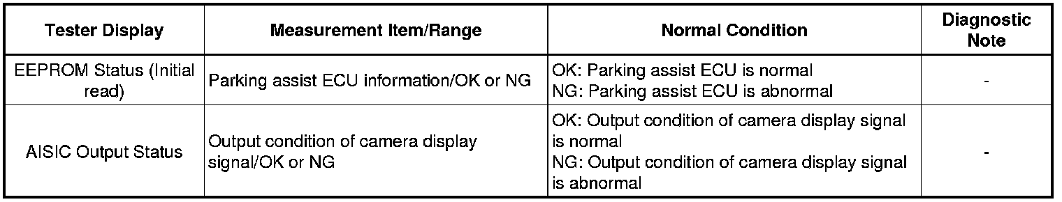 If the parking assist ECU cannot read the stored information when it is activated, the parking assist ECU judges that there is an internal malfunction and stores this DTC.