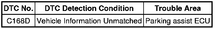 This DTC is stored if the parking assist ECU judges as a result of its self check that the vehicle information received from the ECM via CAN communication and the vehicle information stored in the parking assist ECU do not match.
