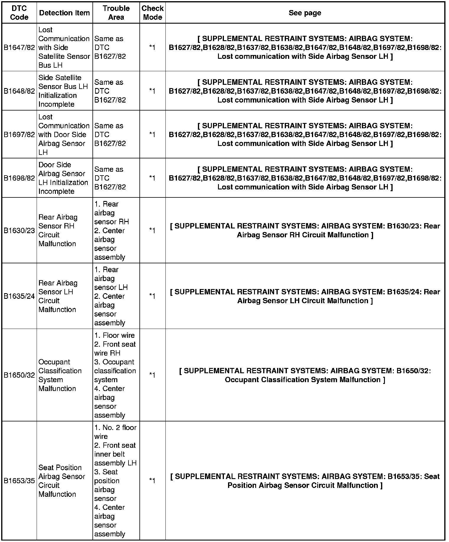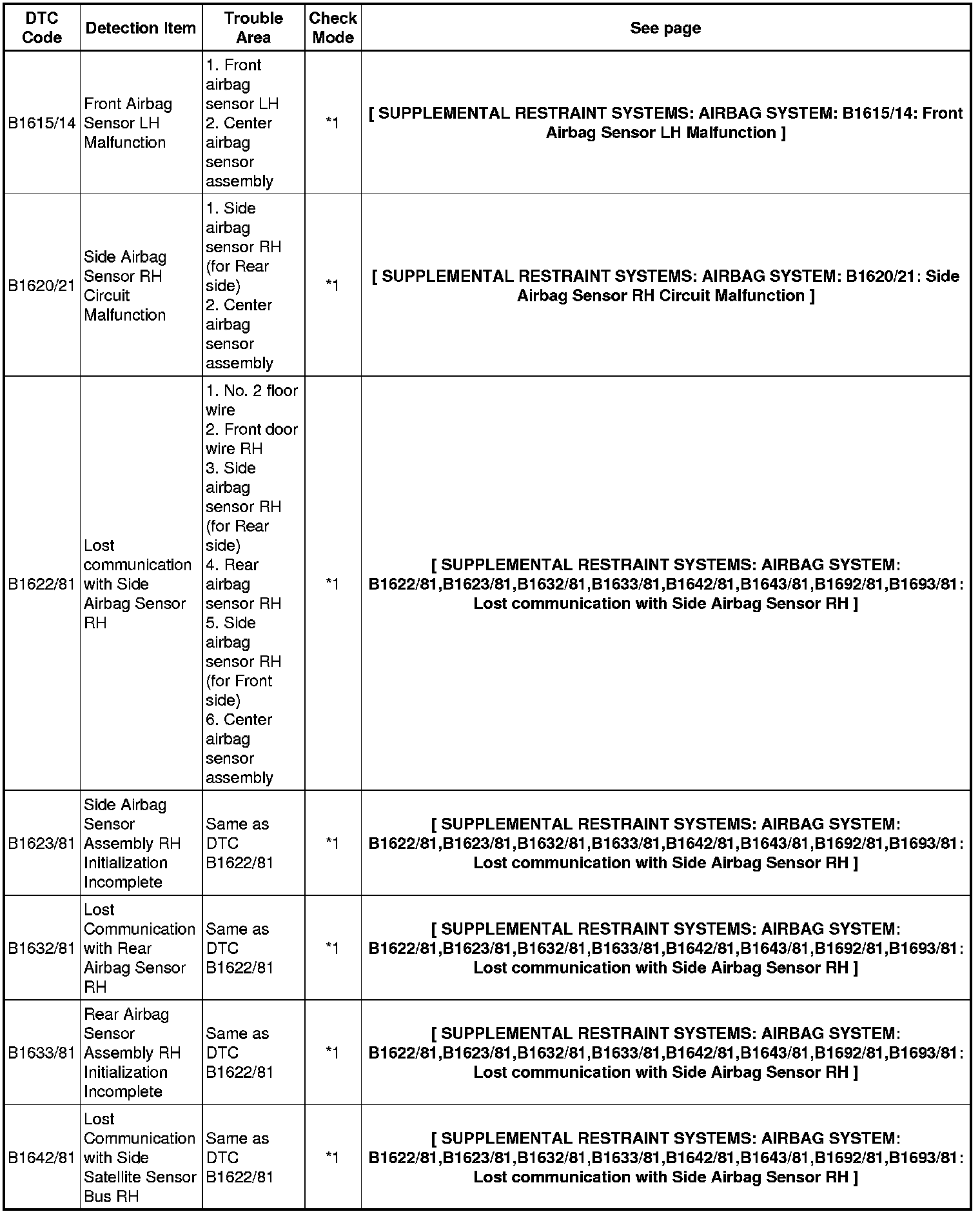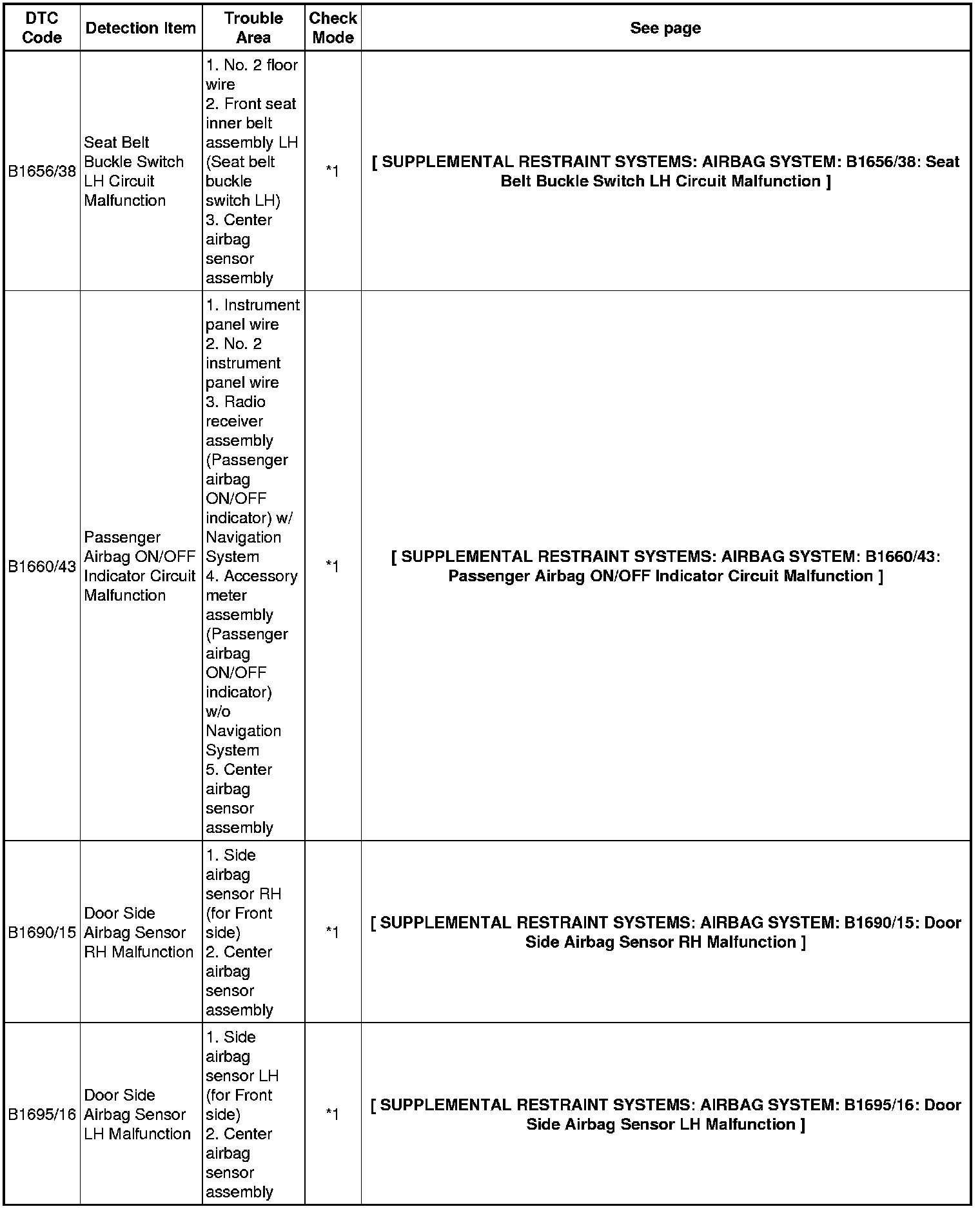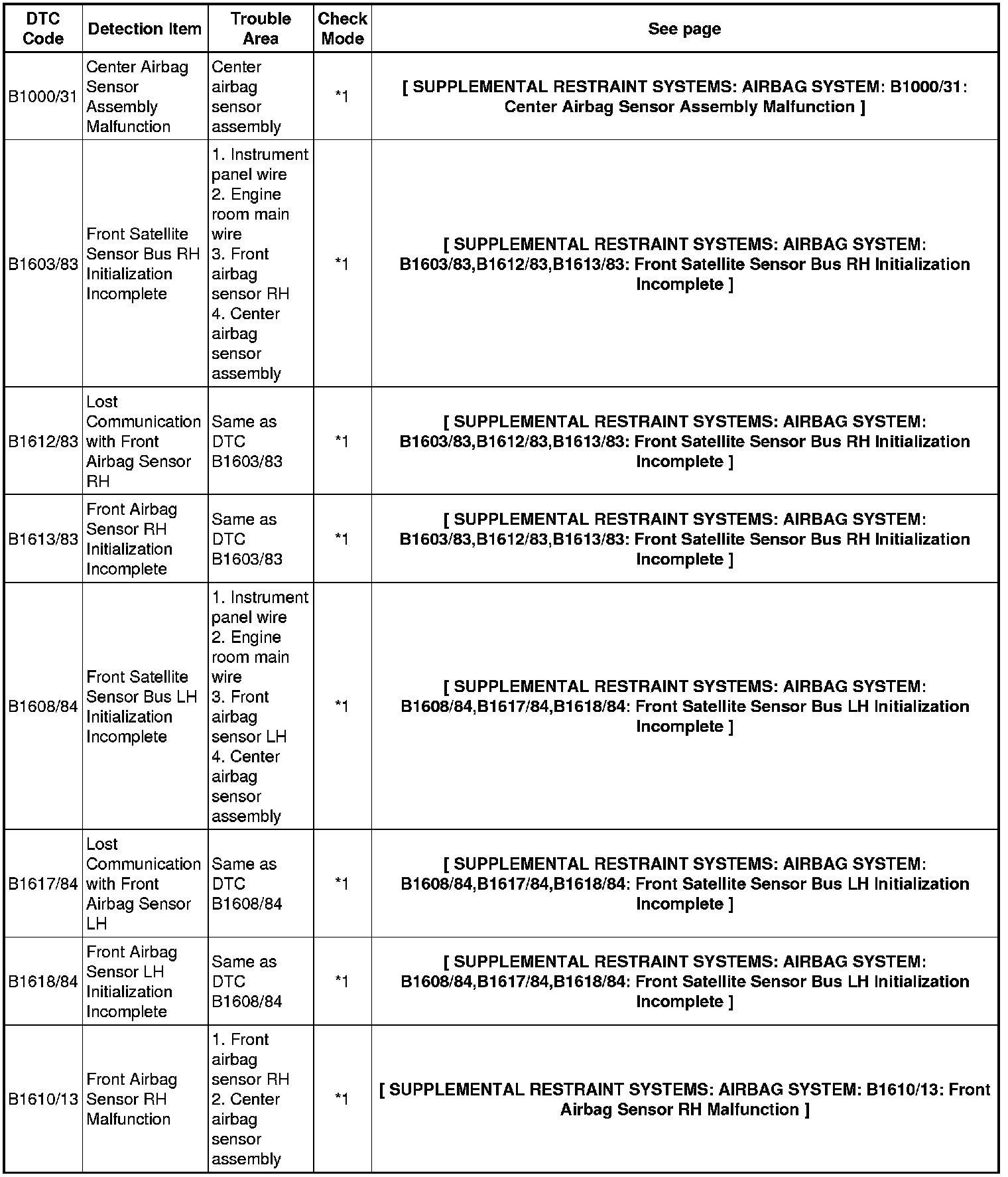 * If a code is not listed on the display chart, the center airbag sensor assembly may have failed.