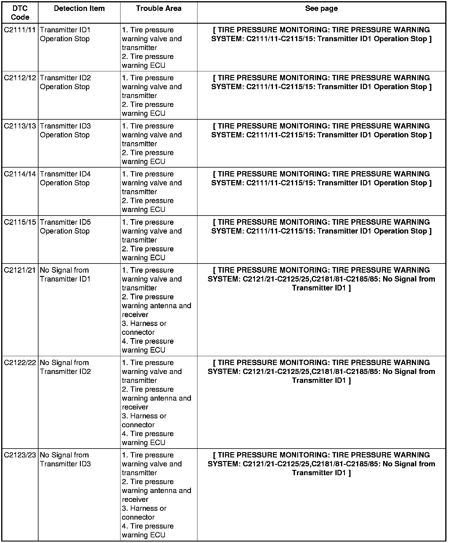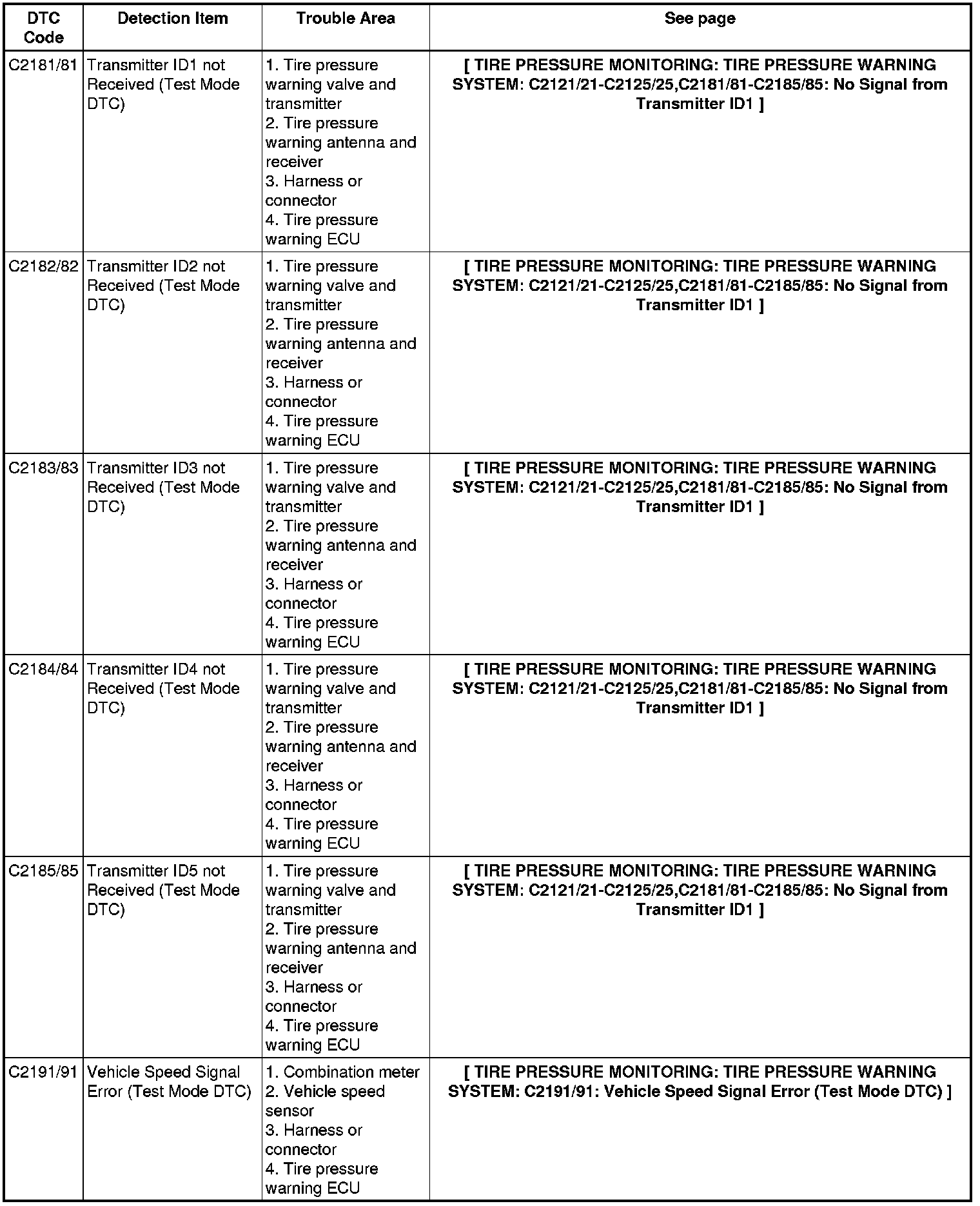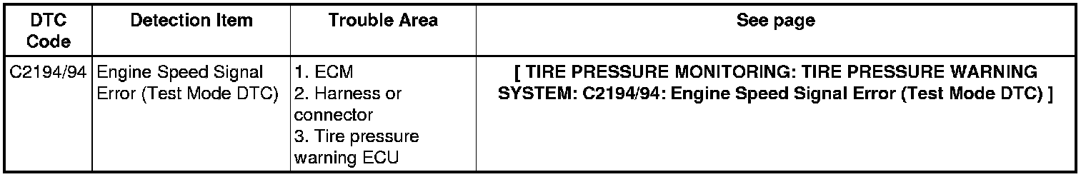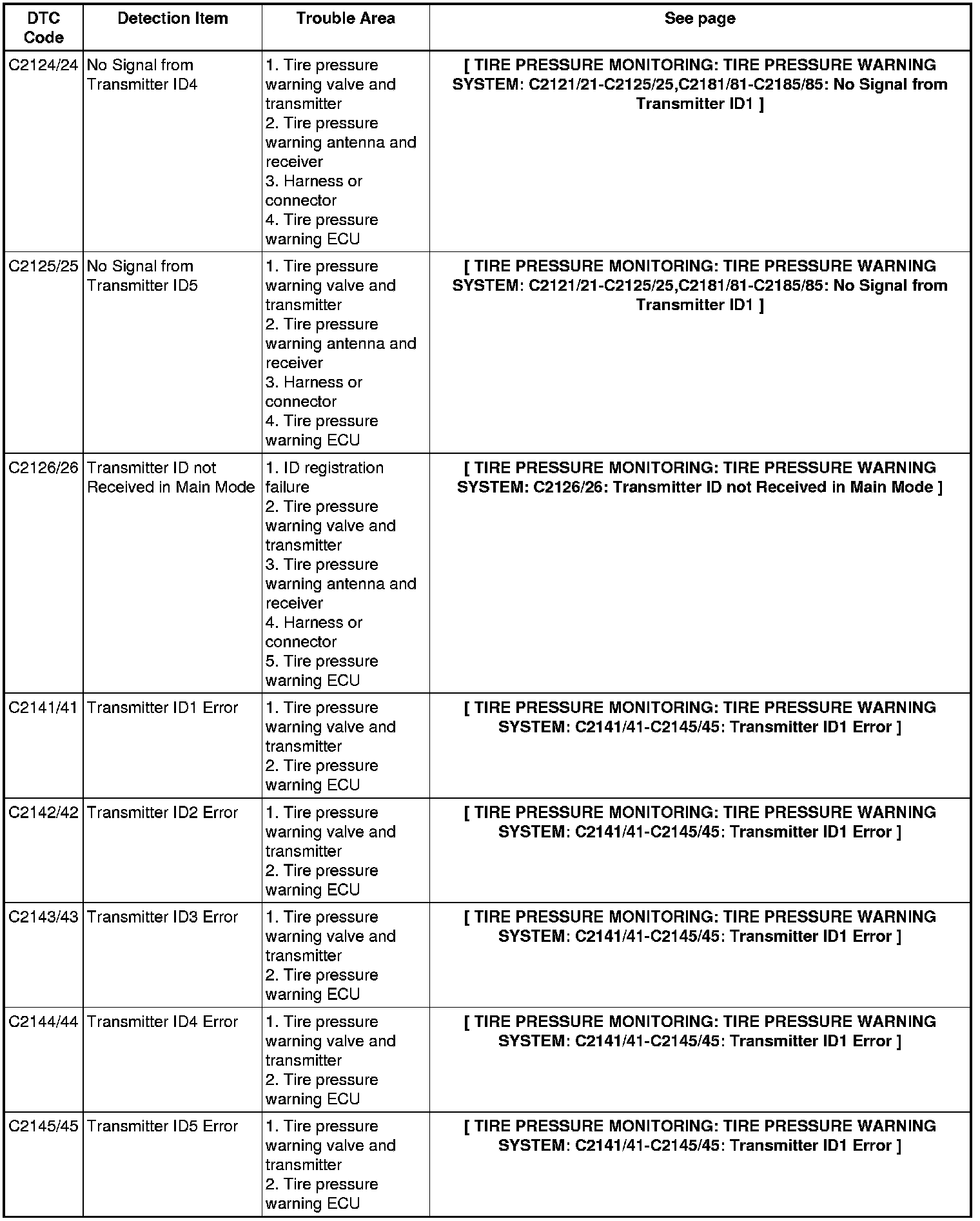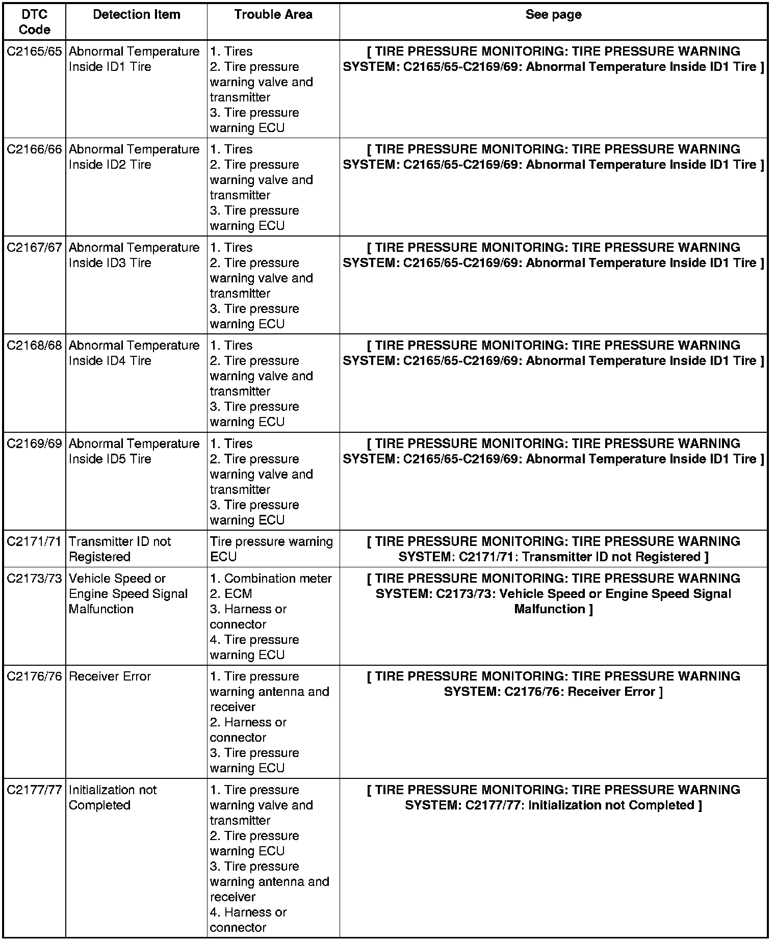 TIRE PRESSURE MONITORING: TIRE PRESSURE WARNING SYSTEM: DIAGNOSTIC TROUBLE CODE CHART
