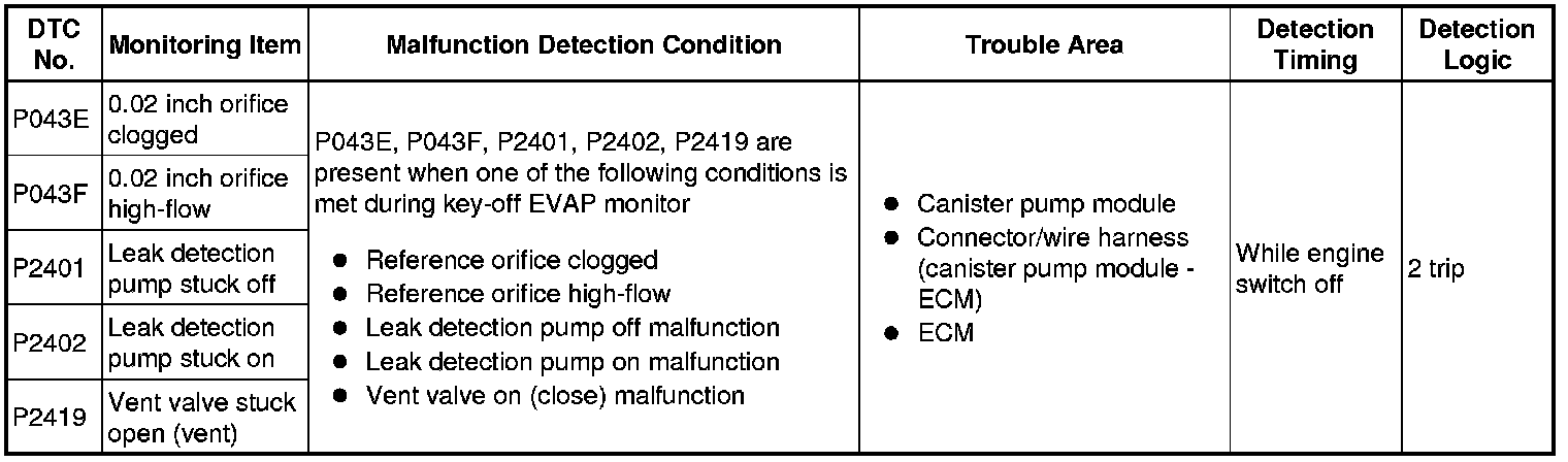 2GR-FE ENGINE CONTROL: SFI SYSTEM: P043E,P043F,P2401,P2402,P2419: Evaporative Emission System Reference Orifice Clog Up