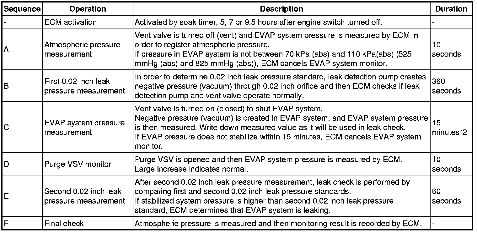 *2: If only a small amount of fuel is in the fuel tank, it takes longer for the EVAP pressure to stabilize.