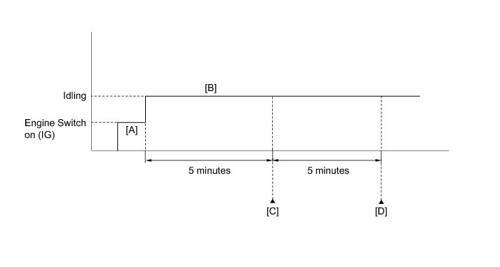 - If the judgment result shows INCOMPLETE or UNKNOWN, idle the engine for 5 minutes and check the DTC judgment result again [D].