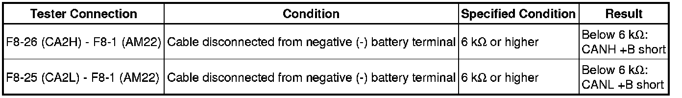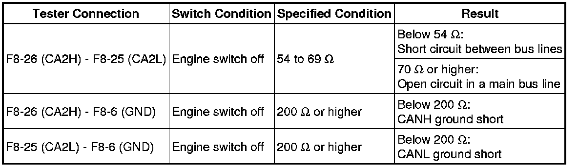 * Turn the engine switch off before measuring the resistances between CAN bus main wires and between CAN bus branch wires.