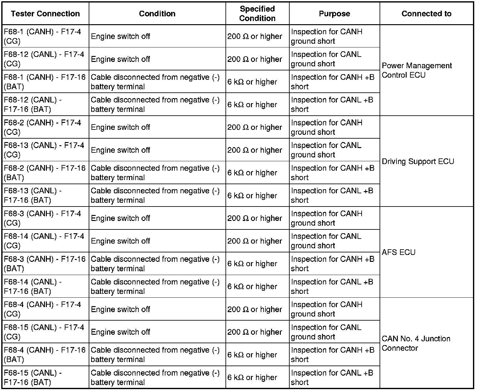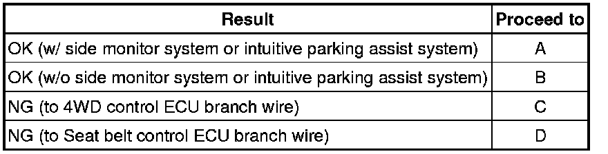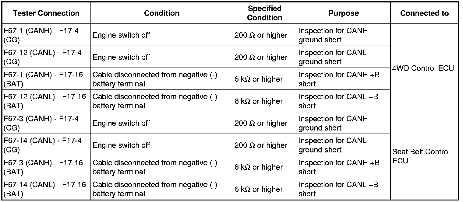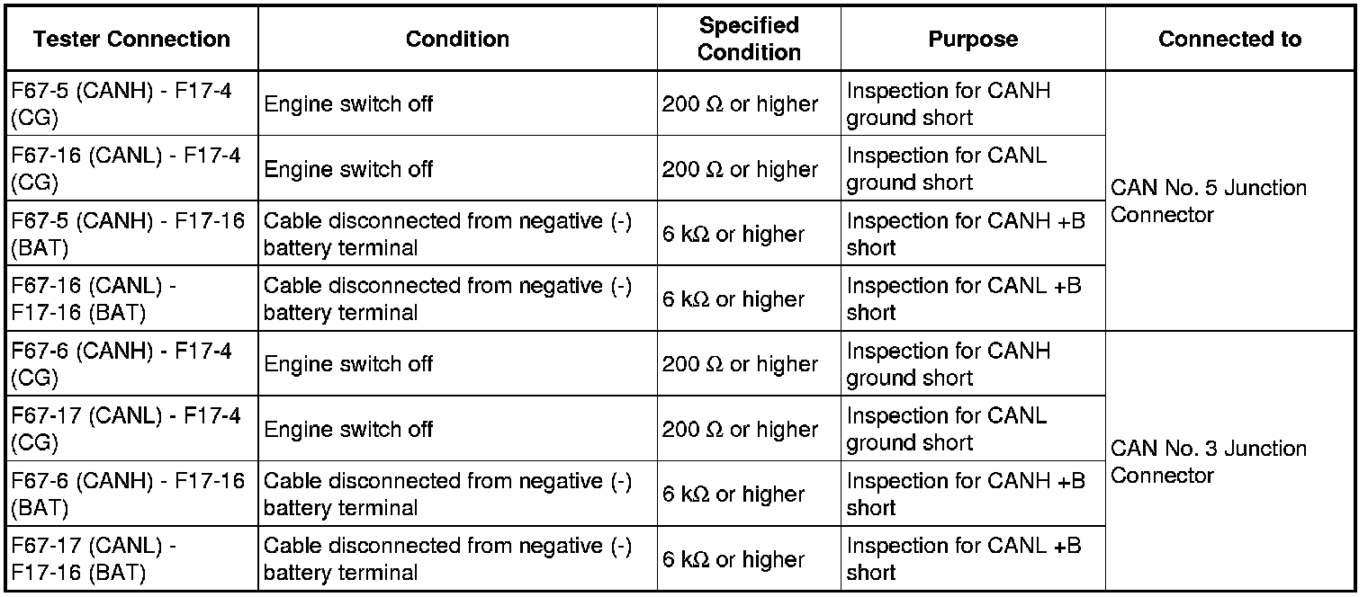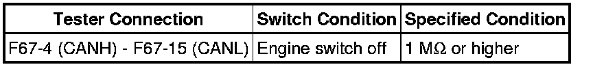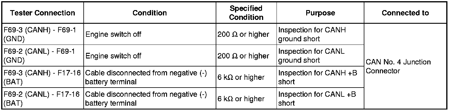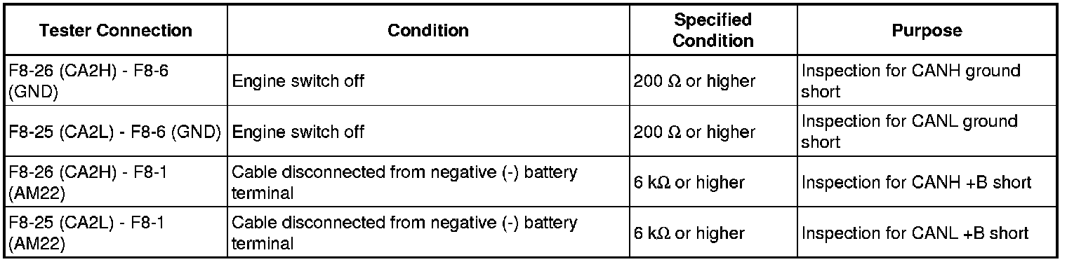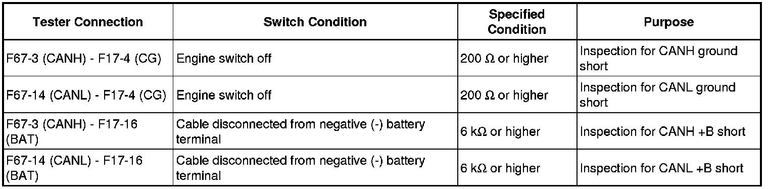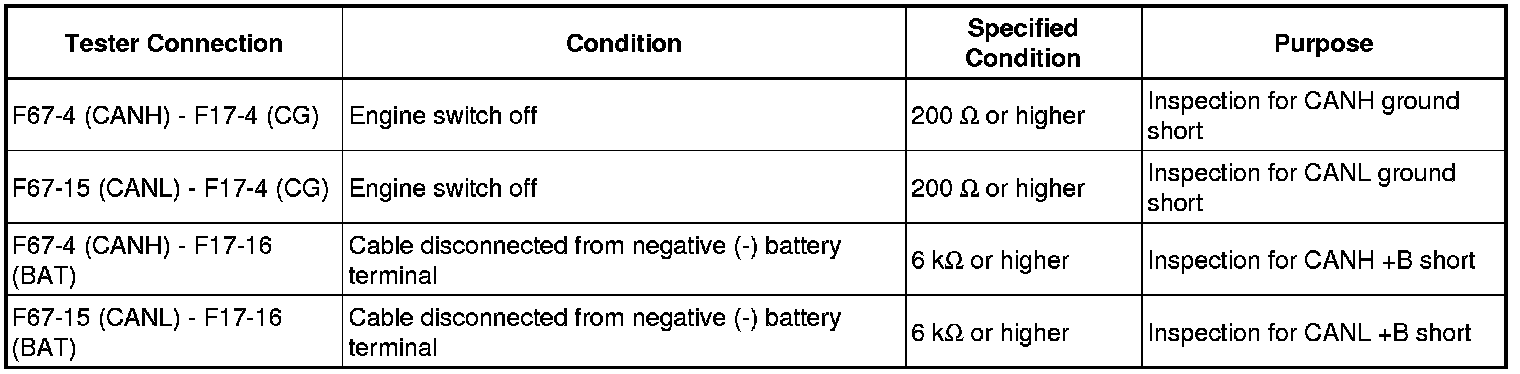 It is only necessary to perform the inspection in the above table for the result (short circuit) that was obtained in the Check CAN Bus Wire inspection.