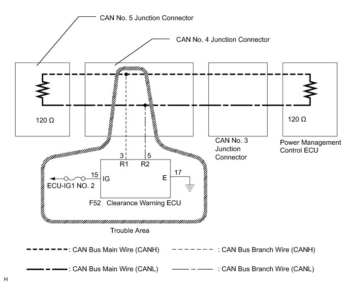 2. CHECK CAN BUS WIRE FOR DISCONNECTION (CLEARANCE WARNING ECU BRANCH WIRE)