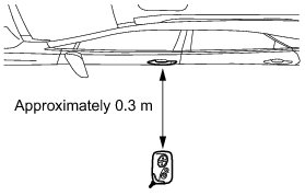 If the key is brought within 0.2 m (0.656 ft.) of the door outside handle assembly, communication is not possible.