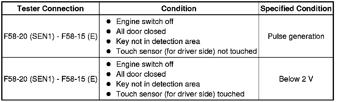 (c) Measure the voltage and check for pulses according to the value(s) in the table below.
