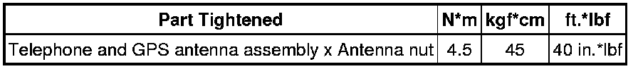 SPECIFICATIONS: CELLULAR COMMUNICATION: TORQUE SPECIFICATIONS