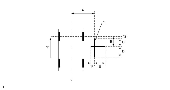 * Set a piece of tape on the ground as the target bar for adjustment. Its width and length are 20 to 30 mm (0.787 to 1.181 in.) and 1995 to 2005 mm (6.545 to 6.578 ft.), respectively. Check the color on the multi-display and choose a tape color which can be easily seen.