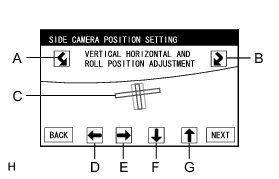 * When "NEXT" is selected, a beep will sound to confirm that the side camera aiming adjustment values have been stored.