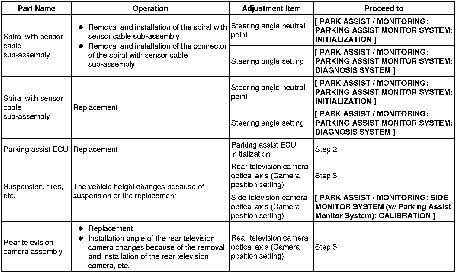 When performing removal and installation, or replacement of the television camera, steering angle adjustment is not required.