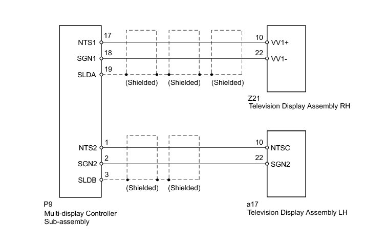AUDIO / VIDEO: REAR SEAT ENTERTAINMENT SYSTEM: Display Signal Circuit between Multi-display Controller and Television Display