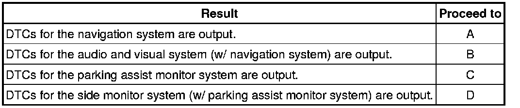 * When DTCs other than those in the Diagnostic Trouble Code Chart for the navigation system are output, refer to the Diagnostic Trouble Code Chart for the relevant system.