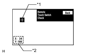 (c) Move the pointer to any position using the remote touch switch knob and press the "ENTER" switch again. When the location of "+" mark is changed with the "ENTER" switch held, check that the coordinate values "X" and "Y" change between 0 and 255.