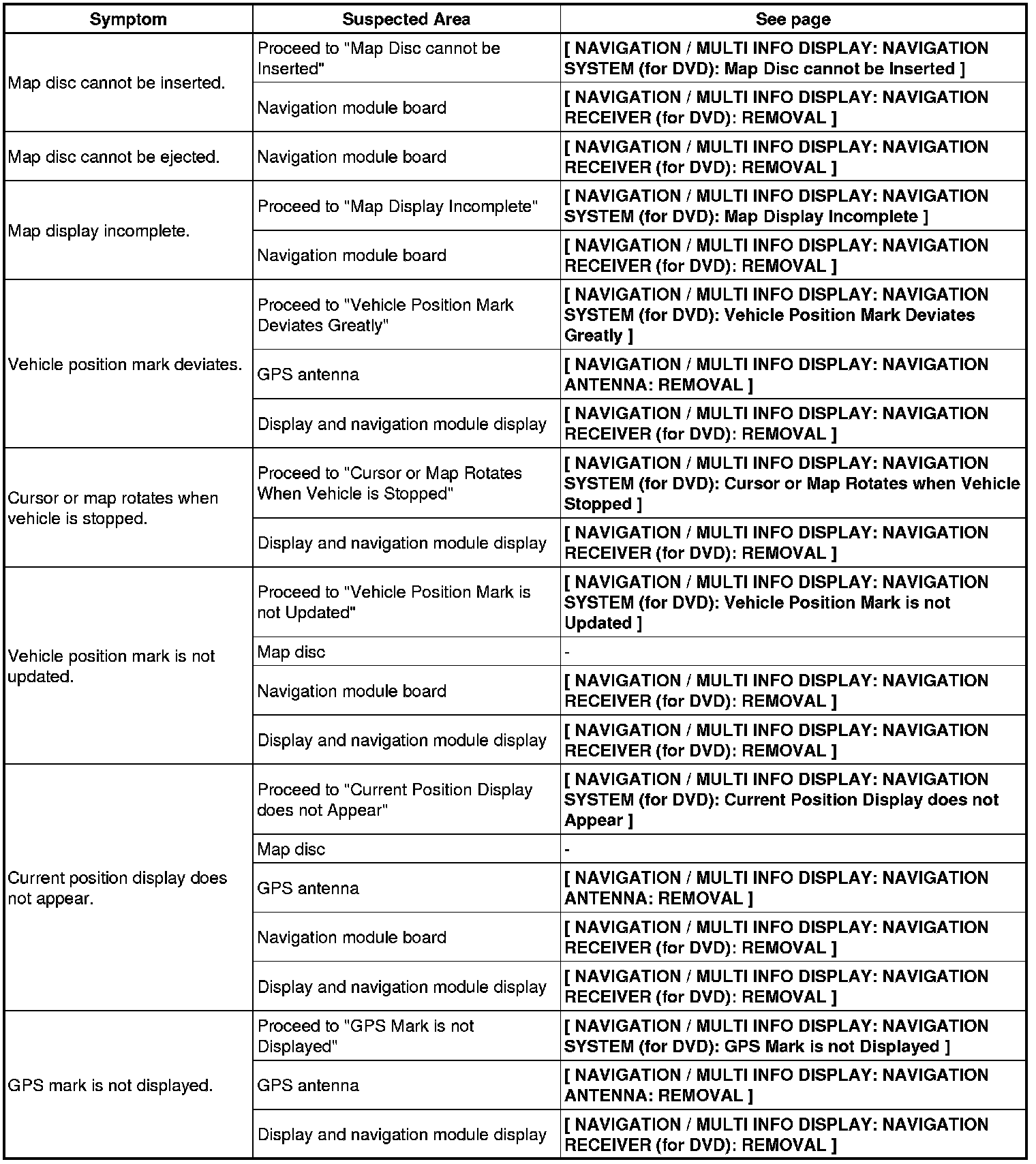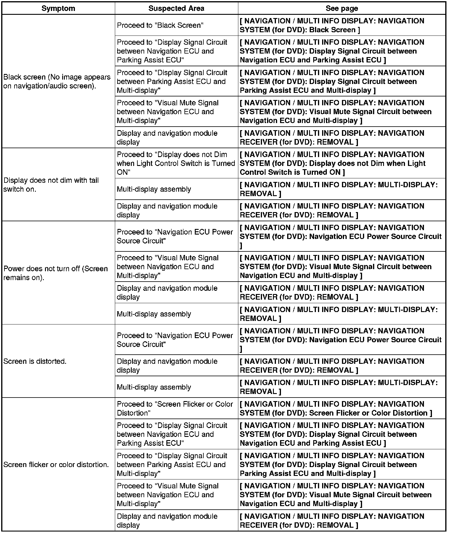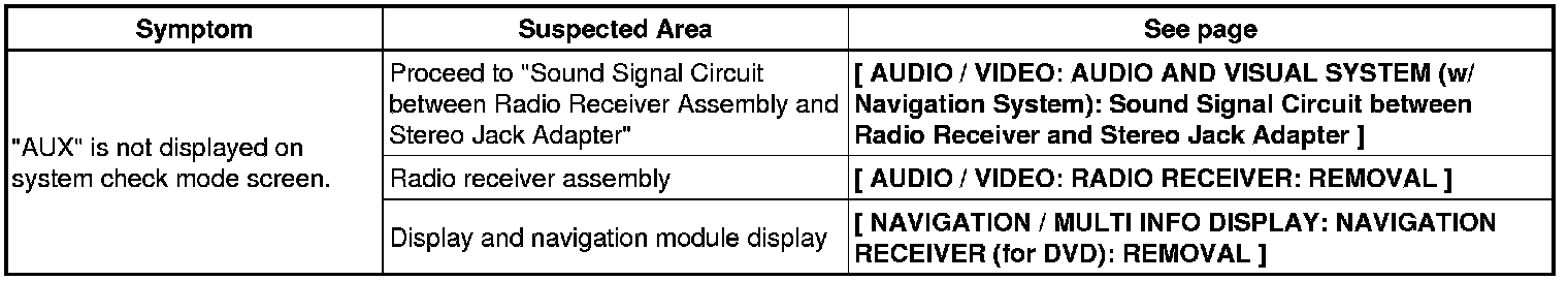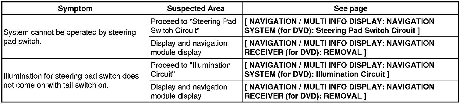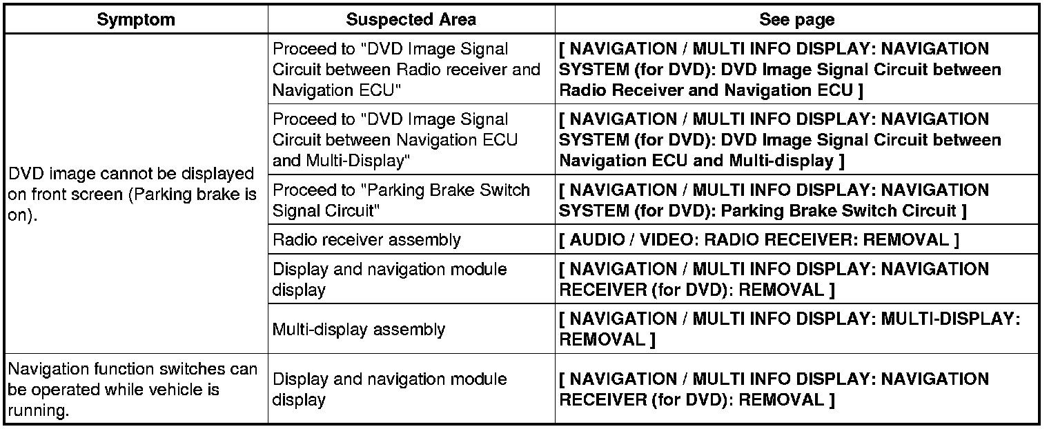 NAVIGATION / MULTI INFO DISPLAY: NAVIGATION SYSTEM (for DVD): PROBLEM SYMPTOMS TABLE