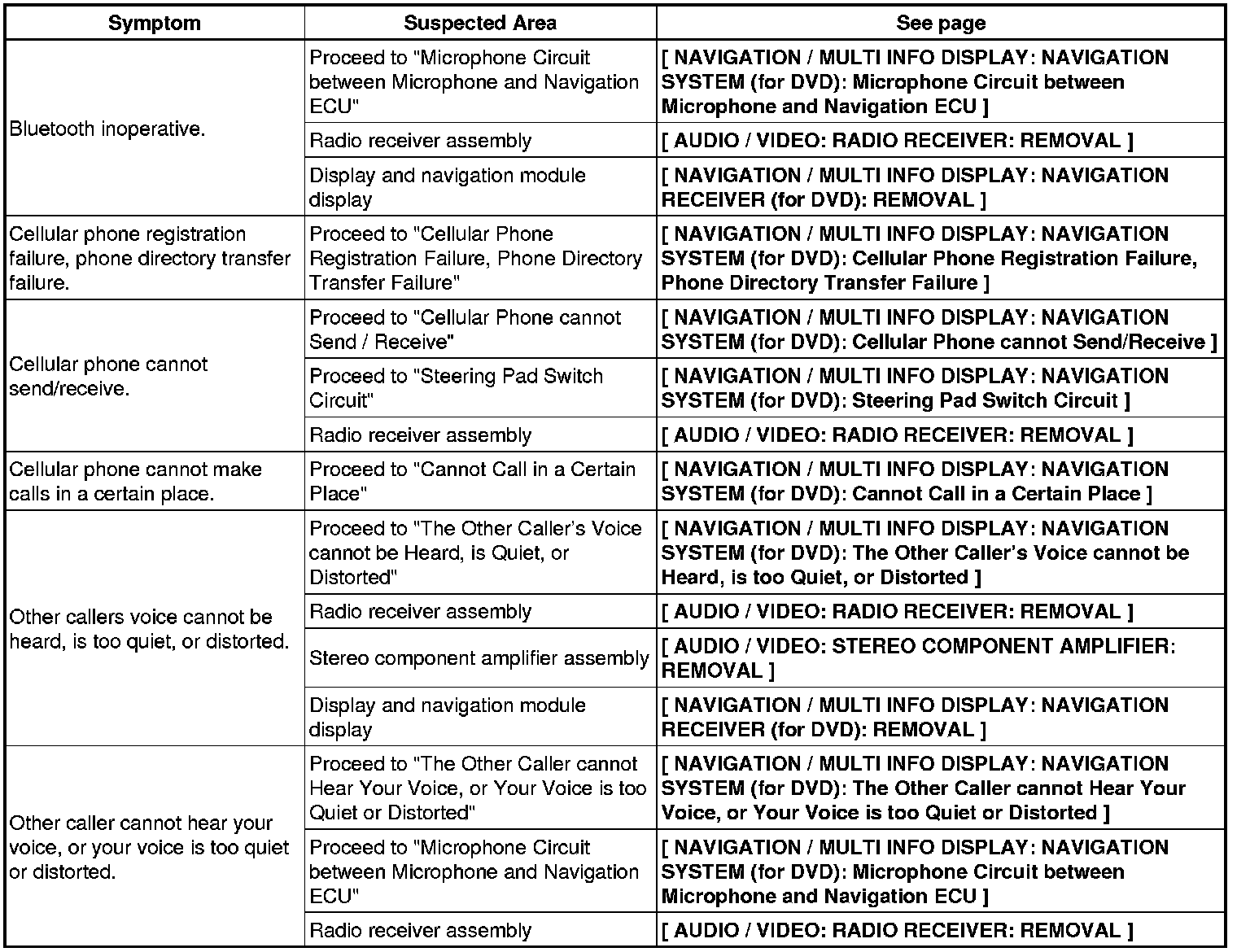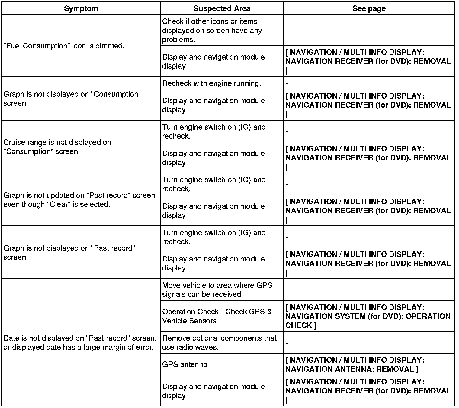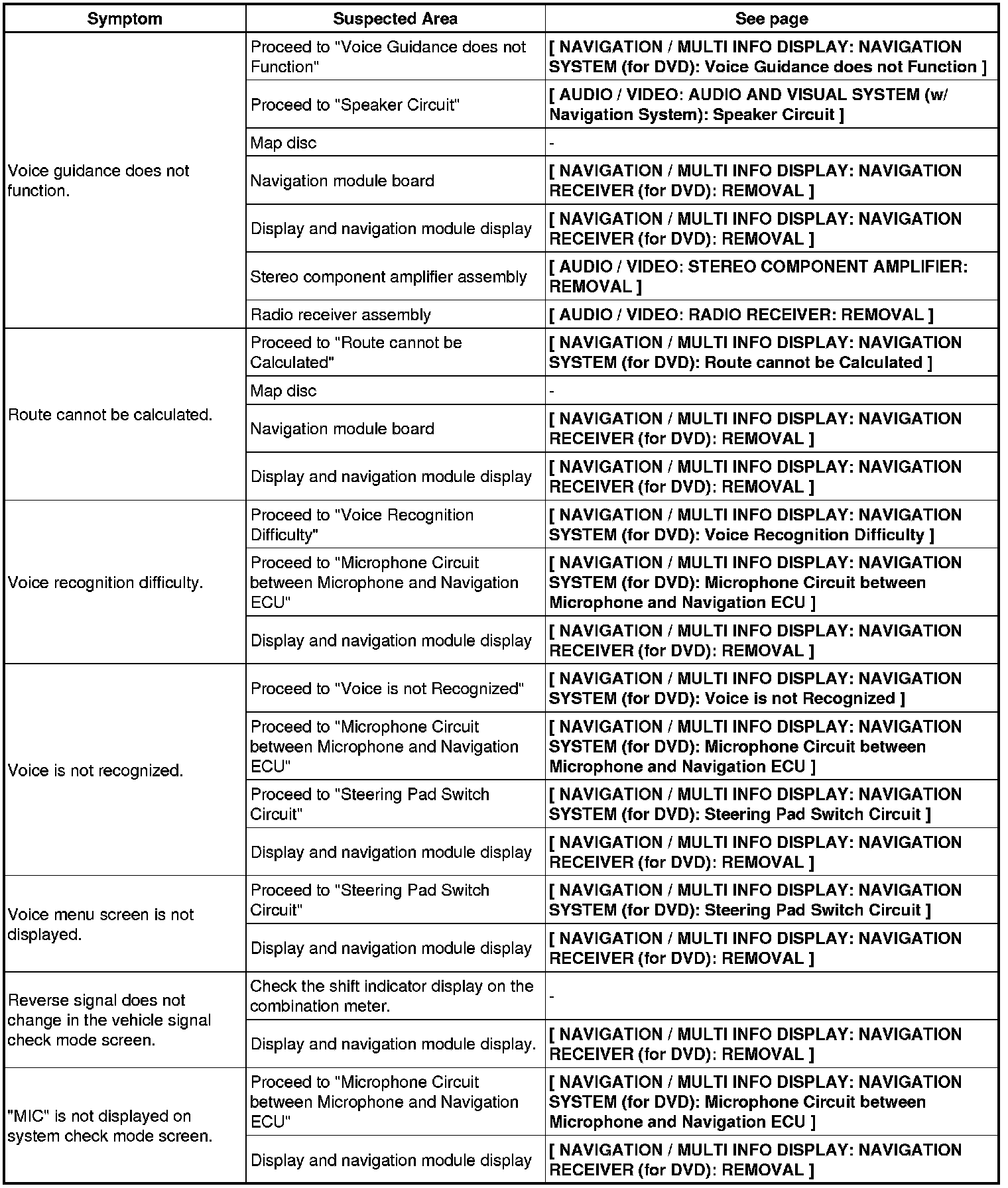 NAVIGATION / MULTI INFO DISPLAY: NAVIGATION SYSTEM (for DVD): PROBLEM SYMPTOMS TABLE