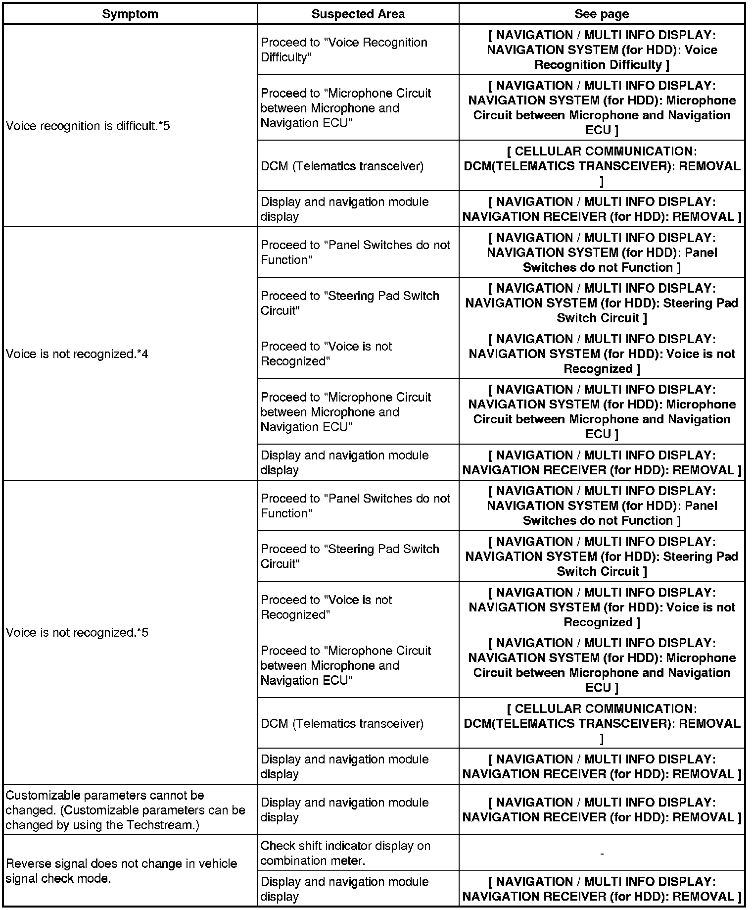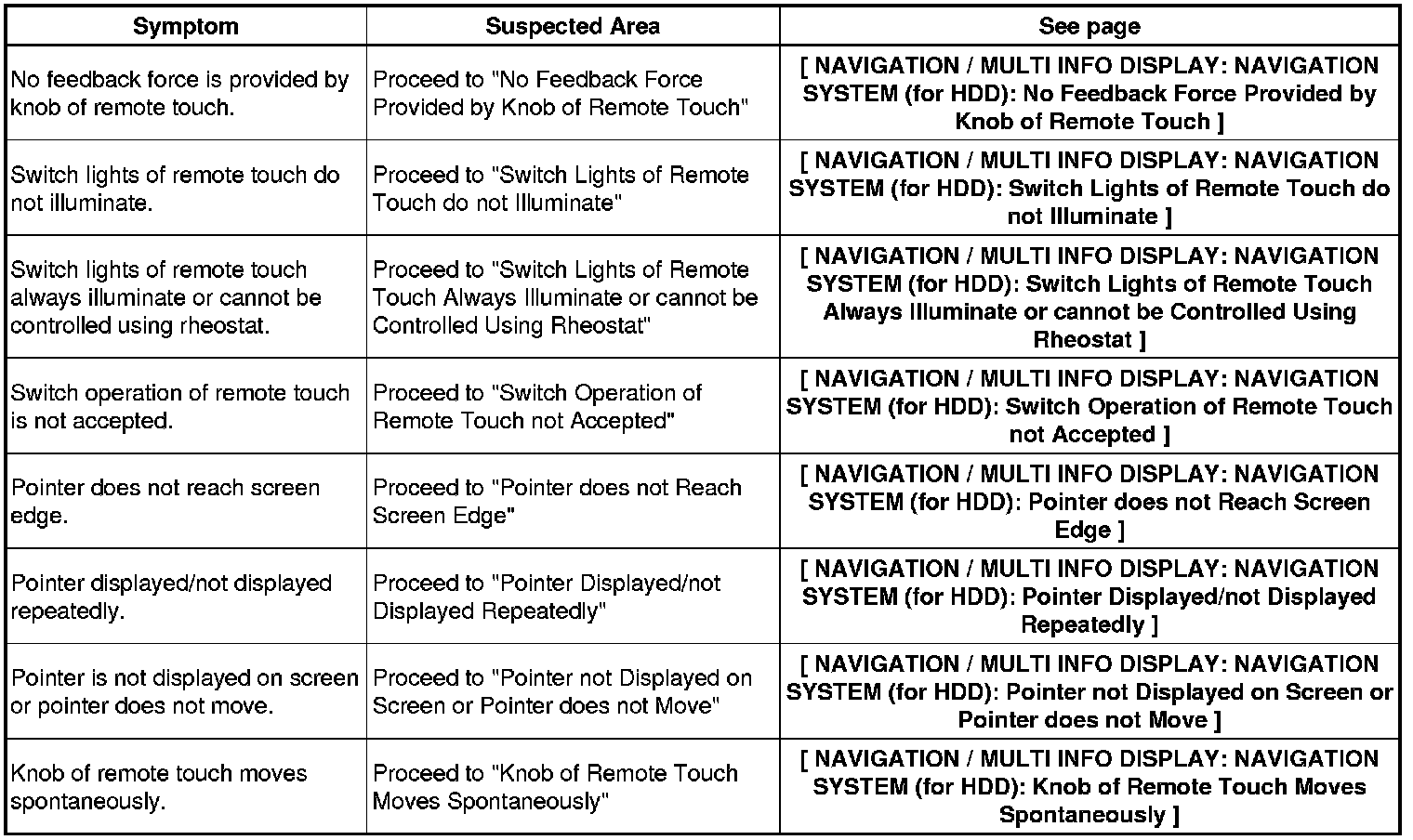 NAVIGATION / MULTI INFO DISPLAY: NAVIGATION SYSTEM (for HDD): PROBLEM SYMPTOMS TABLE