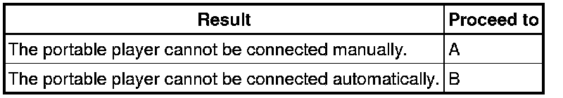 AUDIO / VIDEO: AUDIO AND VISUAL SYSTEM (w/o Navigation System): Portable Player cannot be Connected Manually/Automatically