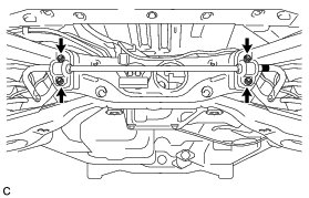 * Be careful as the rear suspension member rear body mounting cushion may fly out.