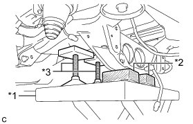 (c) Support the rear suspension member with a jack using 2 wooden blocks and 2 attachments or equivalent tools as shown in the illustration.