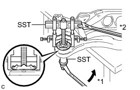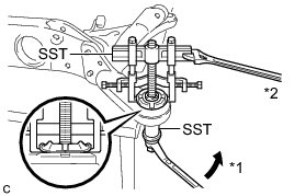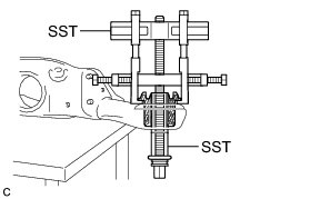 (c) Using SST, separate the rear suspension member rear body mounting cushion LH from the rear suspension member sub-assembly, while applying grease to the clearance between the rear suspension member rear body mounting cushion LH and the rear suspension member sub-assembly.