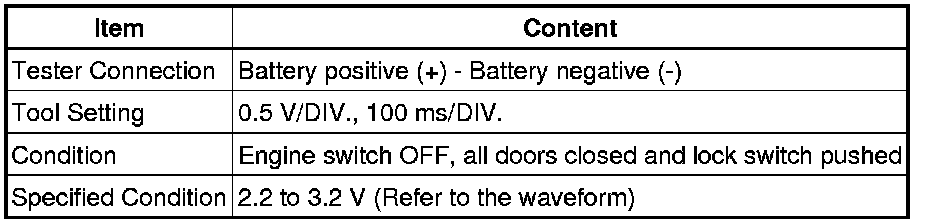 When measuring the battery voltage, while operating the lock switch of a door handle, bring the card key within entry operating range to perform the measurement. For the entry operating range, refer to SYSTEM DESCRIPTION Smart Access System With Push-Button Start (For Entry Function).