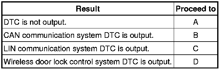 (c) Recheck for DTCs. Based on the DTCs output above, try to force output of the same CAN communication system DTC, LIN communication system DTC or wireless door lock control system DTC by simulating the symptoms indicated by the DTC.