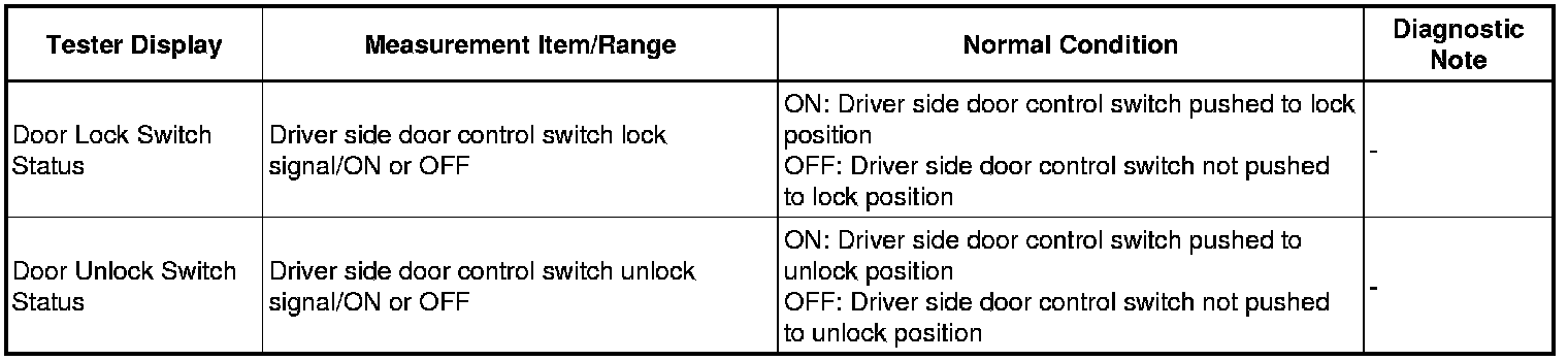 DOOR LOCK: POWER DOOR LOCK CONTROL SYSTEM: DATA LIST / ACTIVE TEST