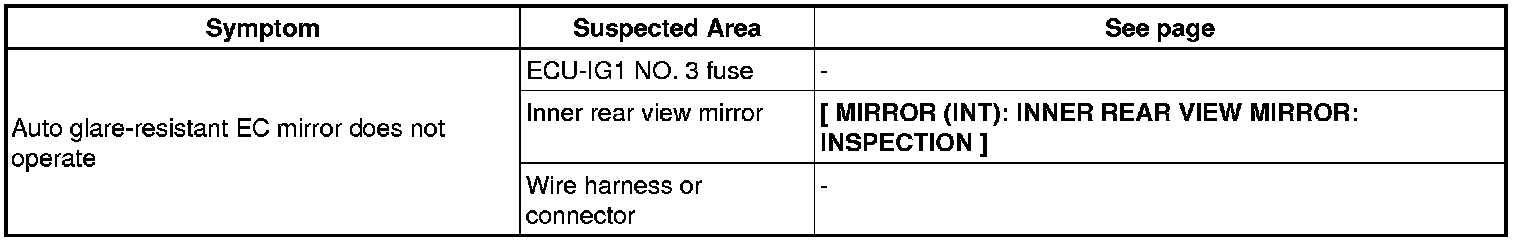 MIRROR (INT): INNER REAR VIEW MIRROR: PROBLEM SYMPTOMS TABLE