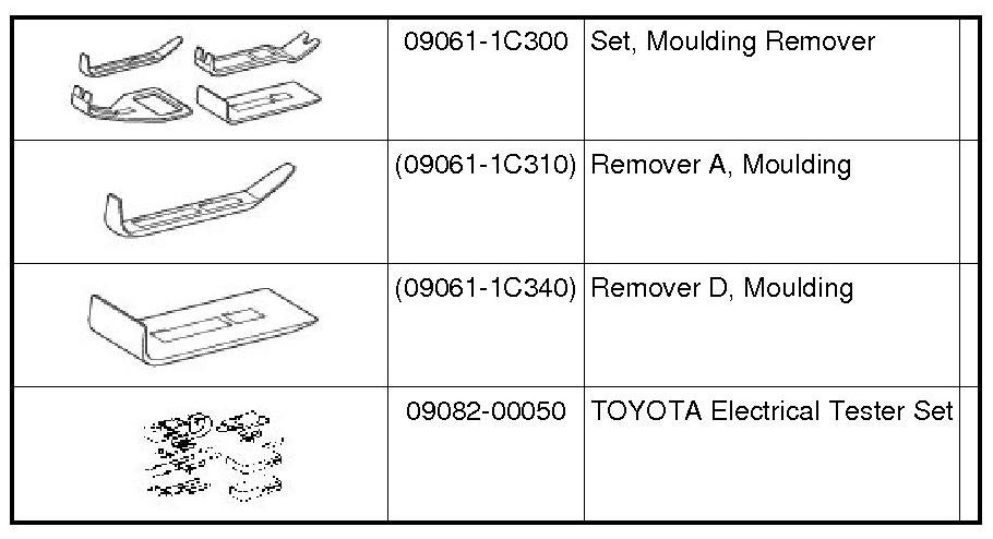 PREPARATION: MIRROR (EXT): RECOMMENDED TOOLS