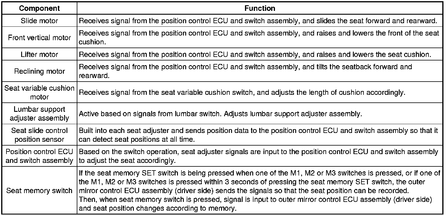 1. FRONT POWER SEAT CONTROL SYSTEM DESCRIPTION