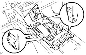 (e) Engage the 4 claws and 4 clips to install the upper console panel sub-assembly.
