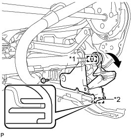 (c) Pull up the bracket of the seat cushion climate control blower as shown in the illustration.