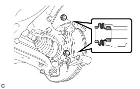 * Install the disc brake cylinder assembly while holding both of the front disc brake pads because the anti-squeal springs may fall off the front disc brake pads.