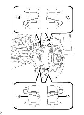 * When replacing the front disc brake pads with new ones, make sure to replace the anti-squeal springs at the same time.