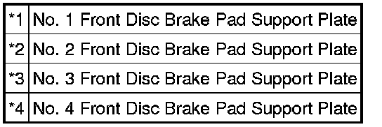 Each front disc brake pad support plate has a different shape. Be sure to put an identification mark on each front disc brake pad support plate so that they can be reinstalled to their original position.
