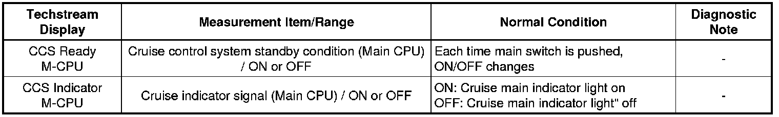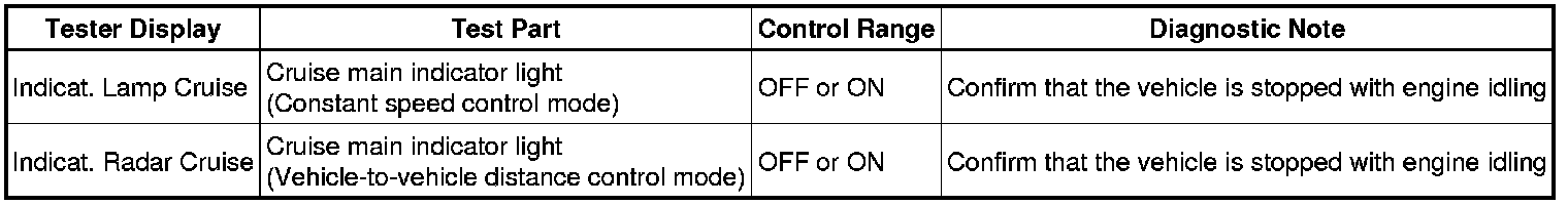 (e) Check the Data List for proper functioning of the cruise main indicator light.