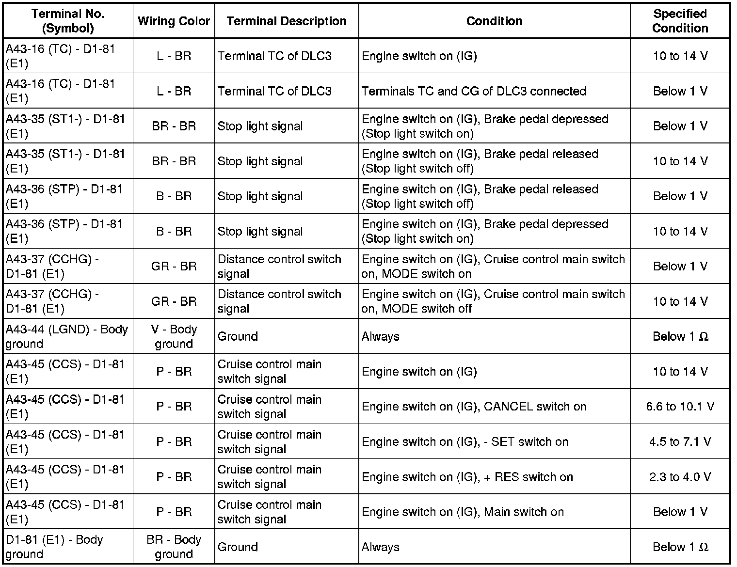 * Terminal: C1-38 (LRRD) - C1-25 (GND)