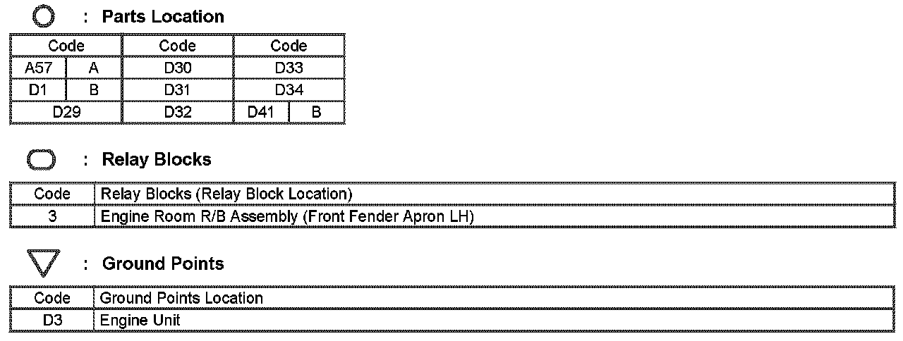 Locations: The locations of components, connectors, ground points, and splices referred to within these diagrams can be found at Vehicle Locations. Locations