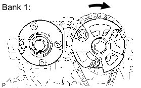 (d) Turn the camshaft timing gear assembly on bank 1 clockwise (approximately 60°) and set it as shown in the illustration. Be sure to loosen the chain sub-assembly between the banks.