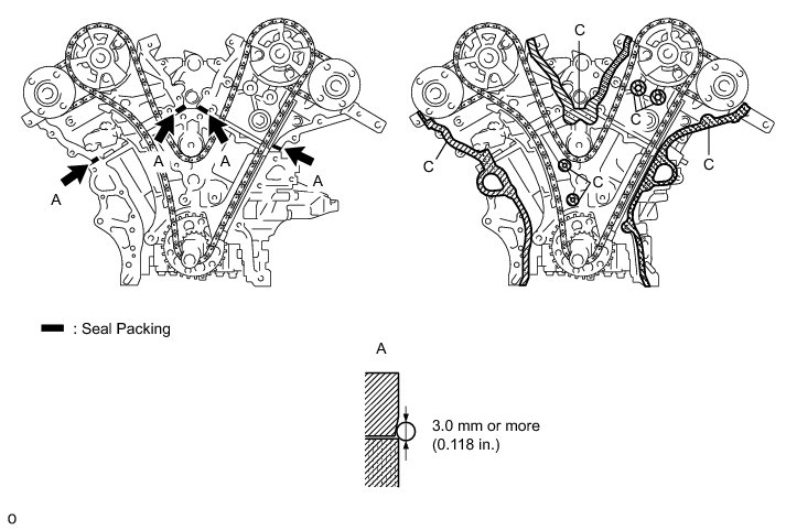 (b) Apply seal packing in a continuous line to the timing chain cover as shown in the following illustration.
