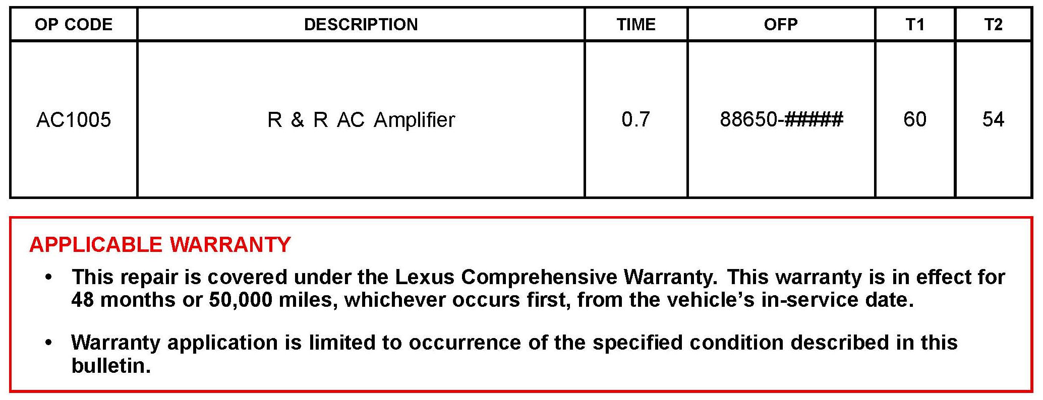 3. Install the updated A/C amplifier. Refer to TIS applicable model and model year Repair Manual: