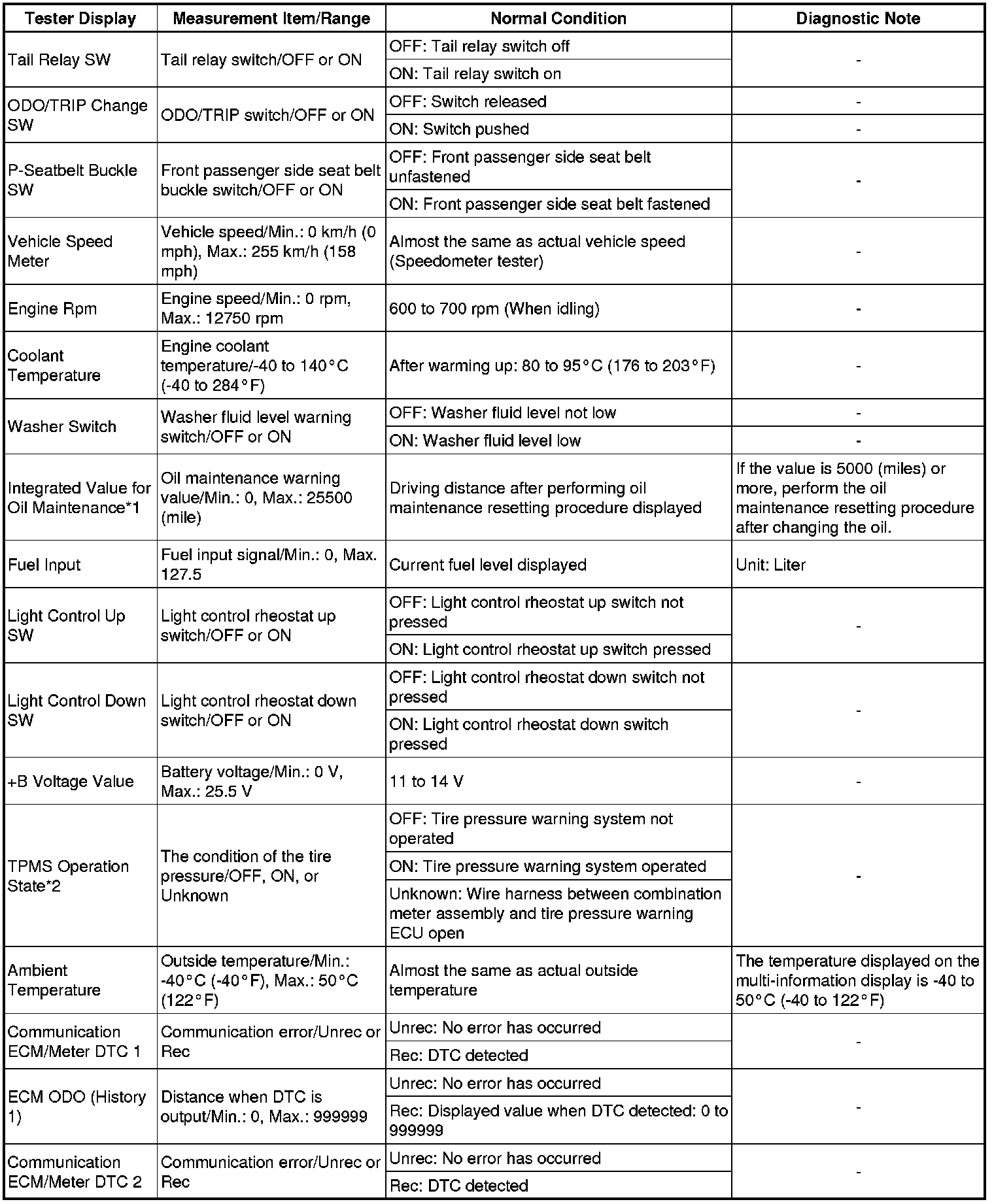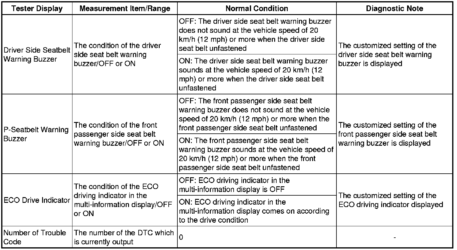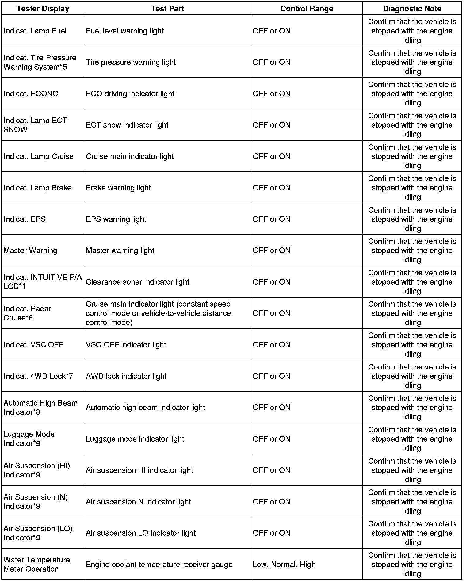 *3: Although the item is displayed on the Techstream, the vehicle have not got the indicator, warning, buzzer, or display.