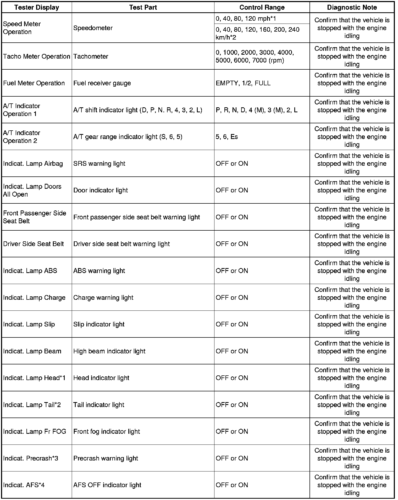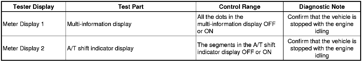 METER / GAUGE / DISPLAY: METER / GAUGE SYSTEM: DATA LIST / ACTIVE TEST