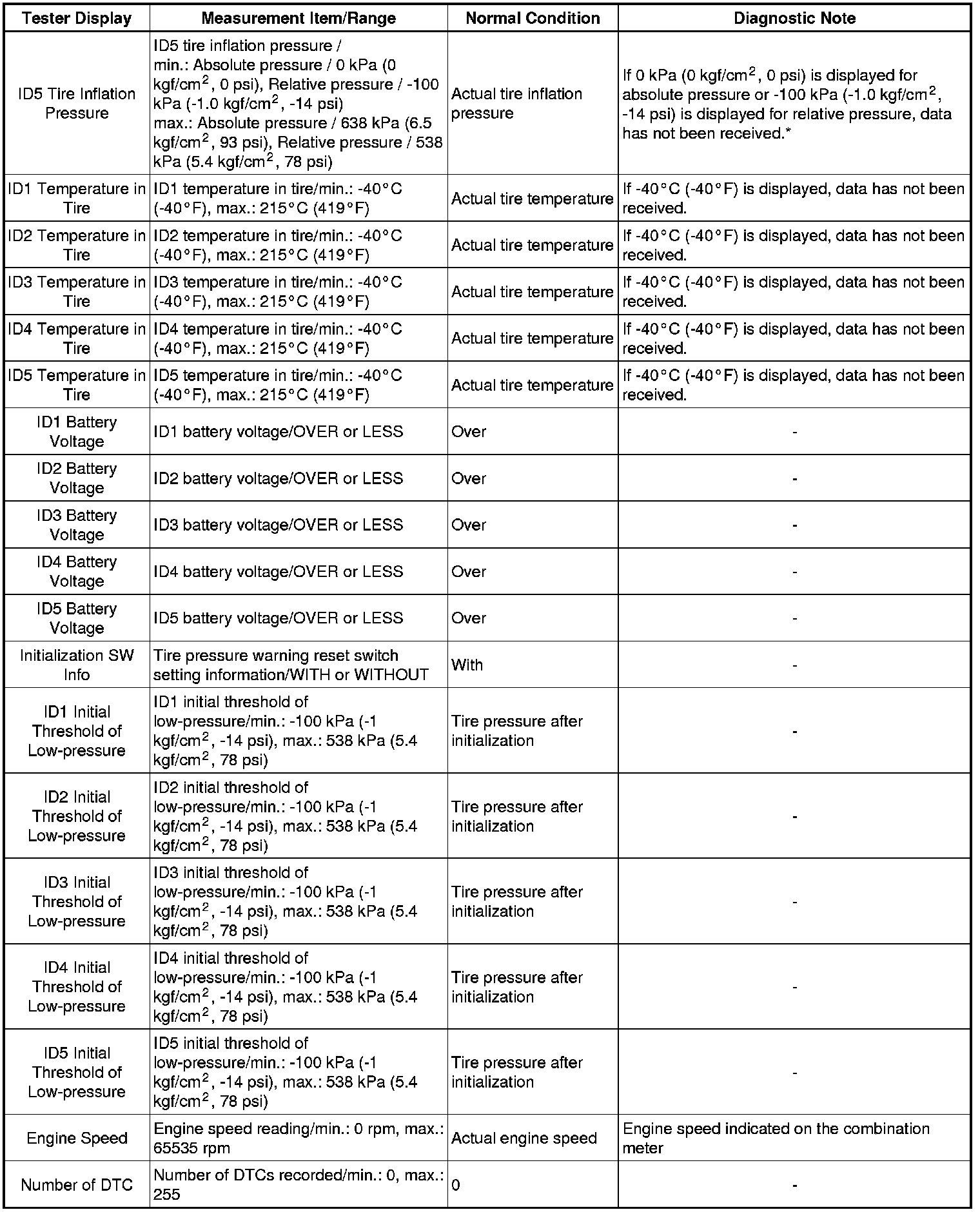 TIRE PRESSURE MONITORING: TIRE PRESSURE WARNING SYSTEM: DATA LIST / ACTIVE TEST