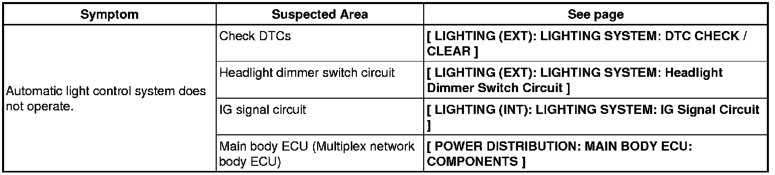 LIGHTING (EXT): LIGHTING SYSTEM: PROBLEM SYMPTOMS TABLE