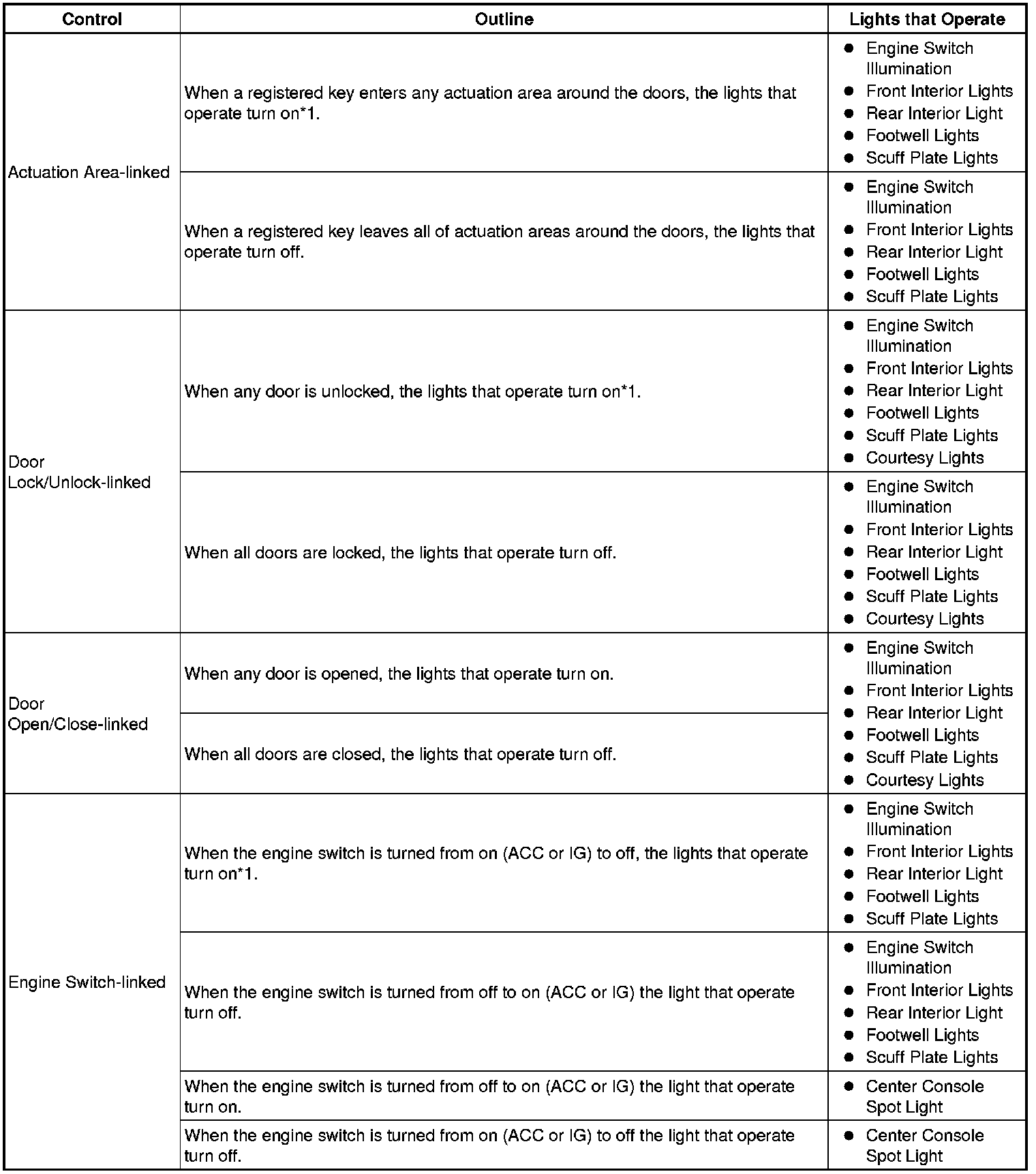 *1: The lights turn on with light adjustment state.