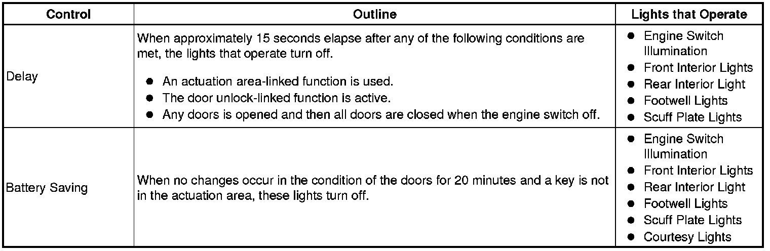 (a) The illuminated entry system has the following control functions: