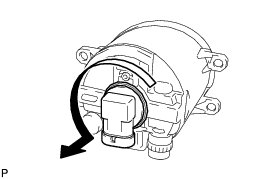 Turn the fog light bulb in the direction indicated by the arrow shown in the illustration and remove it.